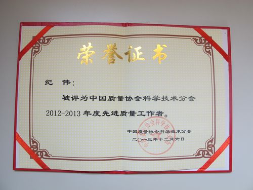 日前,中国质量协会科学技术分会通报表彰了2012-2013年度先进质量工作者,山西煤化所纪伟同志榜上有名。