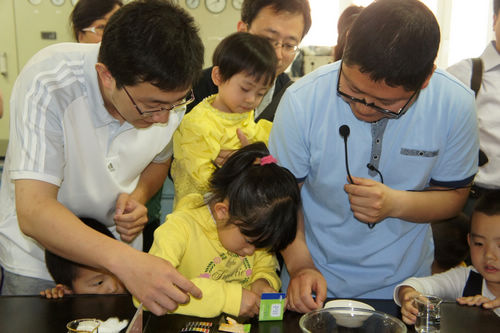为在幼儿心中播洒科学种子,从小激发他们对科学的兴趣,山西煤化所科学传播领导小组办公室主任、党政办主任熊志建针对幼儿特点,做了1场题为“走进科学殿堂 培育科学素养”的科普报告。煤转化国家重点实验室还为小朋友们准备了“酸碱度测定”、“物体称重”和“水中花园”等可亲自动手操作的趣味小实验。通过志愿者的讲解,不仅让孩子们了解了物质的酸碱性,物体称重所用的仪器,化学反应的奥秘等,而且让孩子们亲自使用pH试纸测试了日常生活中的各种饮料的酸碱度,亲自使用分析天平测量一枚硬币的重量,孩子们在开心愉悦的氛围中受到了科学熏陶。
