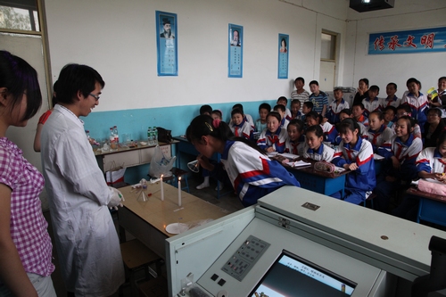 仪式结束后,我所先期参与支教的8名研究生为小学生们做了励志讲座和科普讲座,并为大家演示了神奇的字迹、魔棒电灯、试管吹气球、神奇的“蛋悬浮”等丰富有趣的科学小实验。同学们热情高涨,踊跃提问,争先参与各种互动游戏。