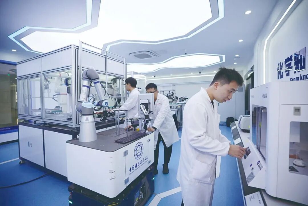 中国科学技术大学东校区,精准智能化学全国重点实验室里,体型敦实的“机器化学家”穿梭在操作台之间,机械手臂灵活地配制化学试剂,青年科研人员输入指令,隔空控制机器人的动作。来自不同专业领域的年轻人打破学科壁垒,“抱团”冲破科研传统的束缚,拥抱科研范式变革带来的新机遇。